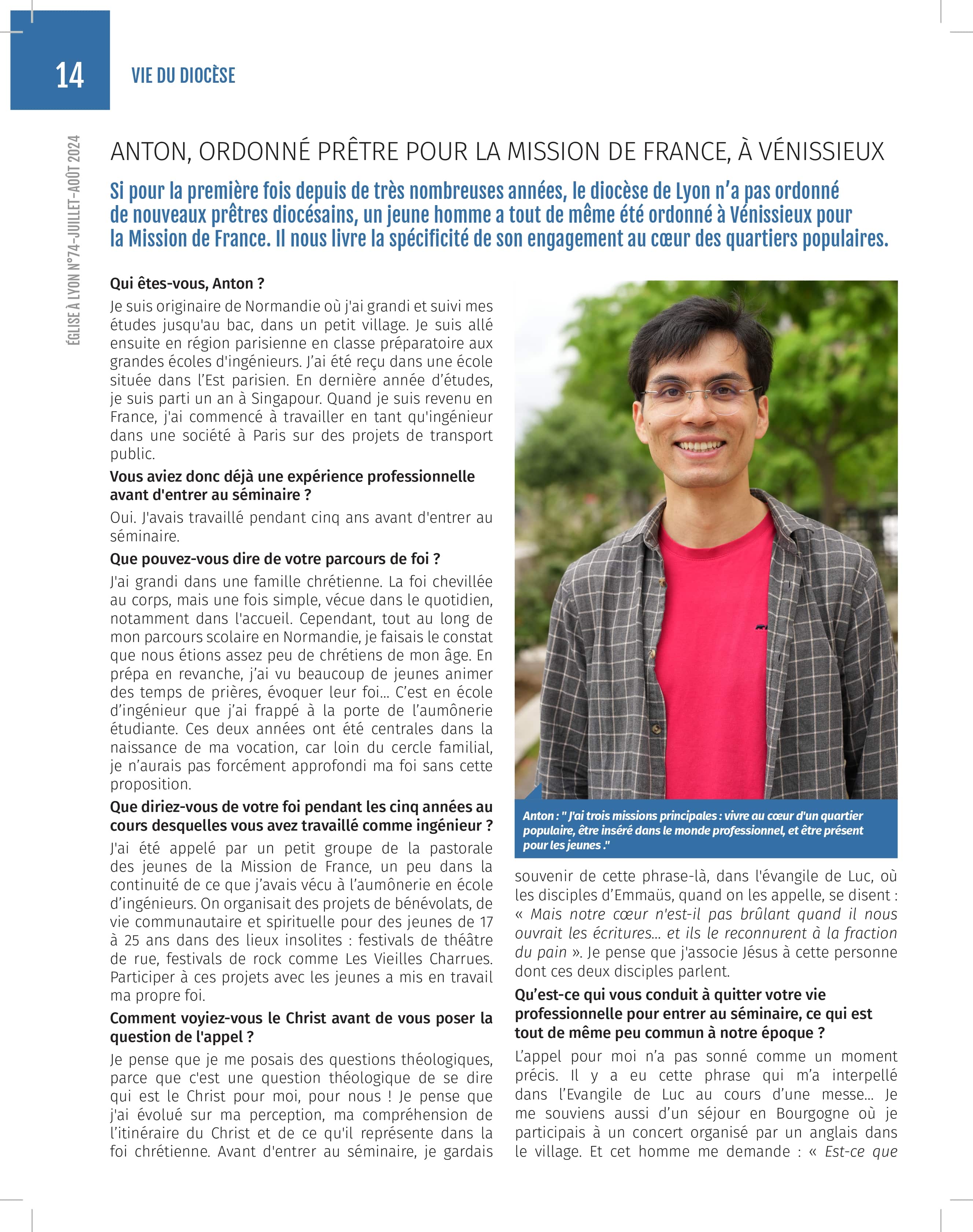 Anton, ordonné prêtre pour la Mission de France- Eglise à Lyon